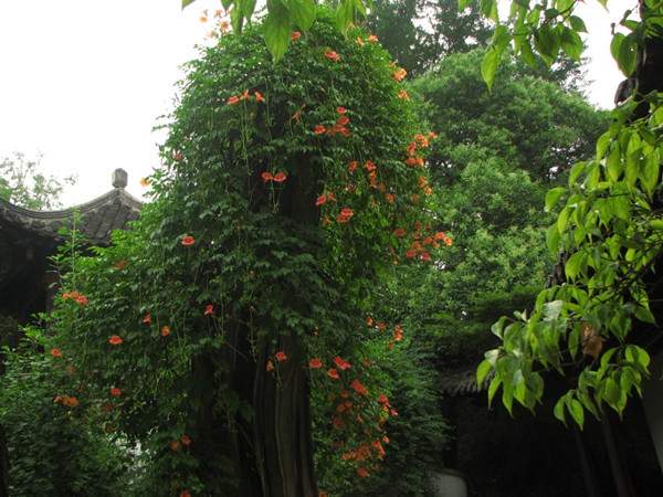 將凌霄種植于假山的縫隙處,或者再適當(dāng)控制其株型,使其驚艷而不喧賓奪主,花開之時(shí),繁花艷彩,更覺動(dòng)人。