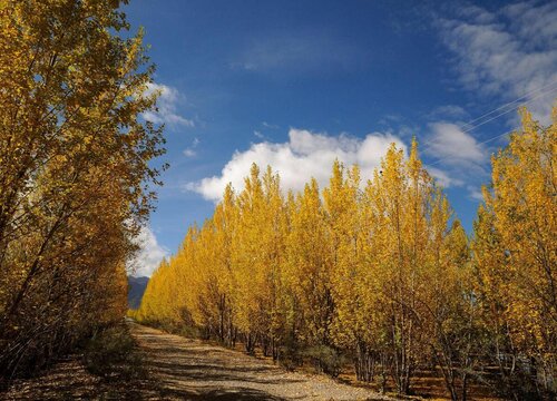 楊樹的葉子為卵圓形,葉片的先端較短,葉子的形狀就像是一個桃子,也像一個心形,更像是一把小扇子。白楊樹的葉片顏色隨著季節(jié)變化而變化,在初秋時期還是綠色的,而到了秋末冬初落葉前,它的葉片就變成黃色的,風(fēng)一吹整個樹上的葉片就會漫天起舞。