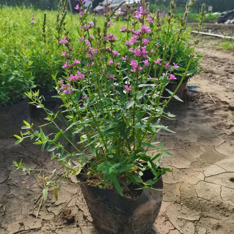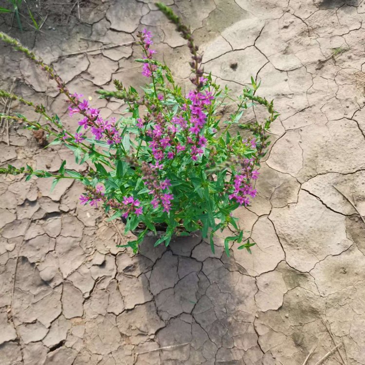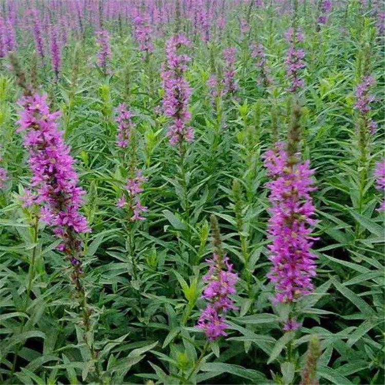 千屈菜又叫水枝柳、水柳、對葉蓮等,多年水生宿根草本植物,植株高約1米,直立生長,主桿上有許多分枝,葉子對生,披針形。葉子長4~6cm,寬1cm左右。總狀花絮長在最上面,長約30cm,花朵簇生。喜歡溫暖濕潤陽光充足的環(huán)境,在我國南方和北方地區(qū)都有野生的,生長在沼澤、湖畔、池塘等淺水地區(qū)。它耐寒性強(qiáng),在山東、河南、北京等地均可自然越冬,霜降以后地面部分枯死,地下部分進(jìn)入泥土休眠,在淺水的河邊和低洼潮濕的地方生長態(tài)勢最好,對土壤的要求不嚴(yán)。千屈菜的生命力極強(qiáng),管理也可粗放,栽培的環(huán)境只要保證光照充足、通風(fēng)良好即可,在生長期要經(jīng)常打頂促使其矮化分蘗,長出豐滿茂密的株型。